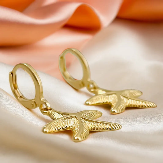 Boucles d’Oreilles Étoile de Mer Dorée – Créoles Plaquées Or